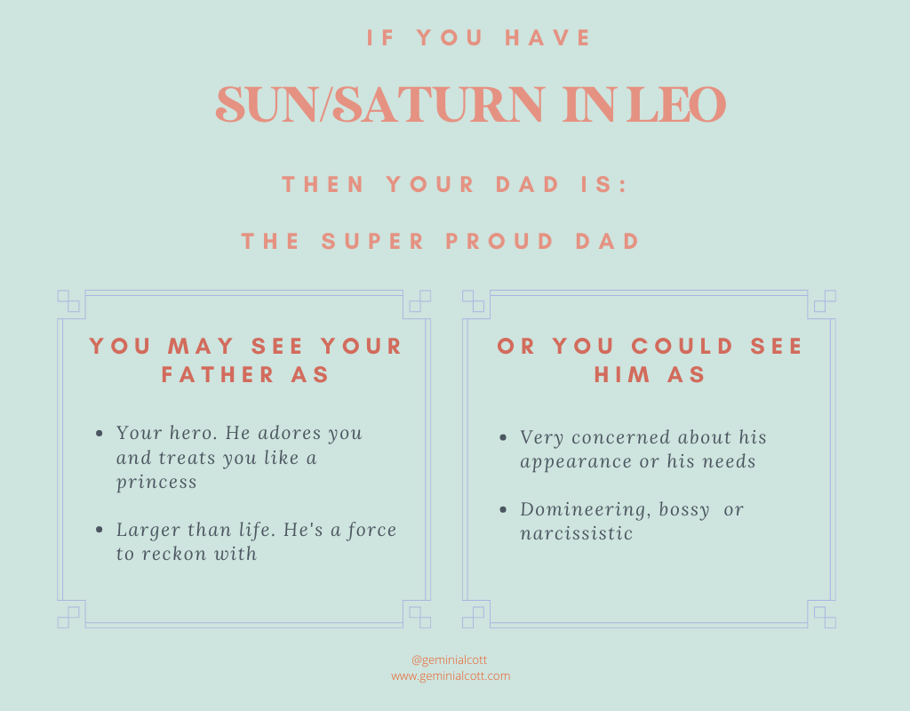 The zodiac sign connected to your Sun or Saturn tells the story of how you view him. It’s not his Sun sign. That’s different. He could be an Aries Sun IRL but you may view him as a Pisces. The zodiac sign connected to your Sun or Saturn explains how you view him, not what his Sun sign is. Sometimes how you view your father may surprise you. It could be hidden under layers of your subconscious, so you’re not aware of it. Grab a shovel.