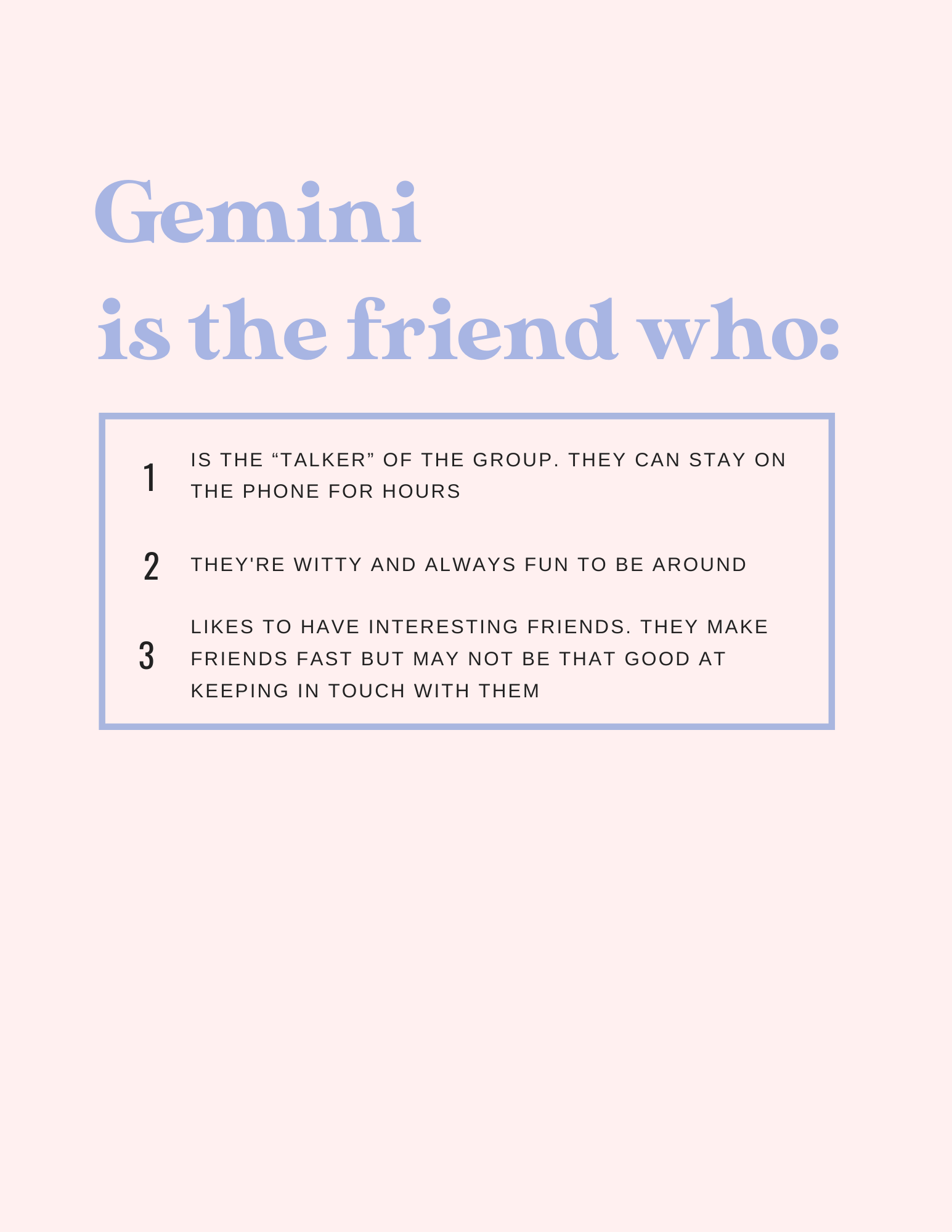 Gemini & Friendships Jun 16 Written By Gemini Alcott Do you have a Gemini friend? What are they like? SHARE YOUR THOUGHTS ON THE ZODIAC FORUM HERE Gemini Alcott