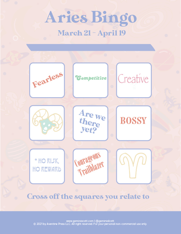 I call BINGO! How much are you like your zodiac sign? Do you share some or all the key traits? Now you can find out. Check off all the boxes that match your personality and then yell “BINGO!”